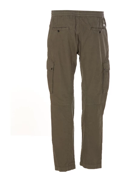 C.P. Bedrijfsbroek Groene vrachtbroeken, zijzakken, elastische taille, zakken, zip -pocketdetail