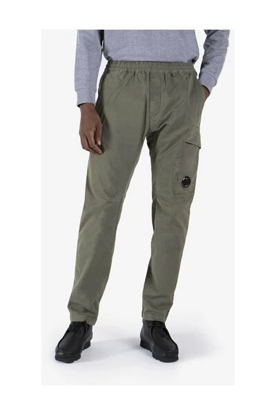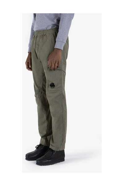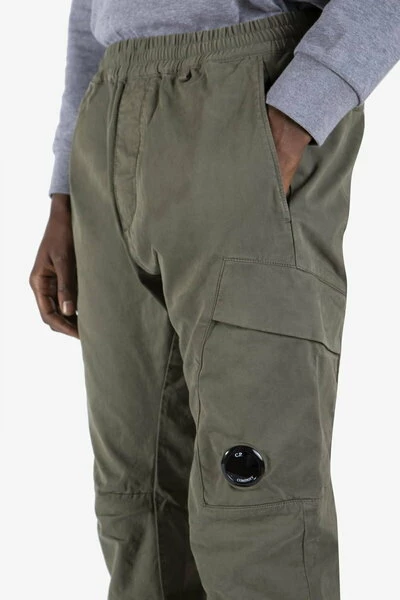 Militaire groene broek met recht gesneden been, stretchleven, schuin voorzakken en een grote ladingsmodelzak op het linkerbeen met iconische lens. Sportinspiratiemodel in hoofd geverfd katoen. Normale pasvorm. Het model is 1,90 m hoog en draagt de TG. 50.