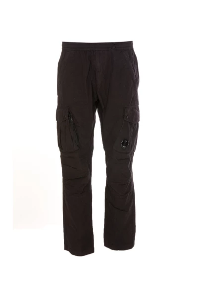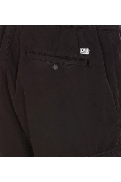 C.P. Bedrijfsbroek Zwarte vrachtbroeken, zijzakken, elastische taille, zakken, zip -pocketdetail