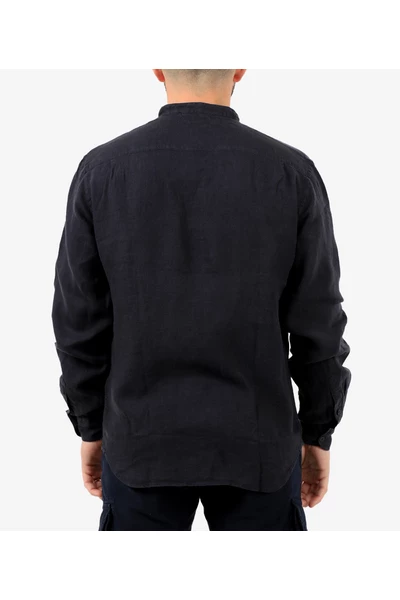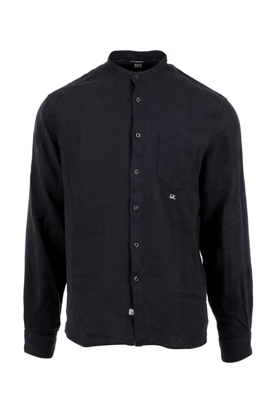 C.P. Bedrijf shirts blauw – voorknopen; Manchetten gesloten door knoppen -korean kraag; Lange mouwen -pocket aangebracht op de borst; Zwart logo gedrukt op de voorkant, merklabel op de placket – afgeronde zoom – gewone pasvorm