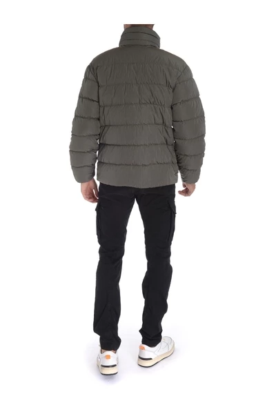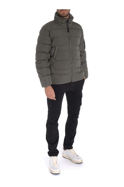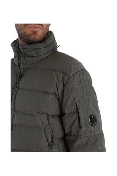 Dekbed c.p. Bedrijf gemaakt van nylon Eco Chrome Green. Pakket intrekbare kap op de mouw met C.P. Bedrijfslens waterbestendige samenstelling: 100% polyamidevulling: 90% grijze eendenjager, 10% Piuma D Grijze eend