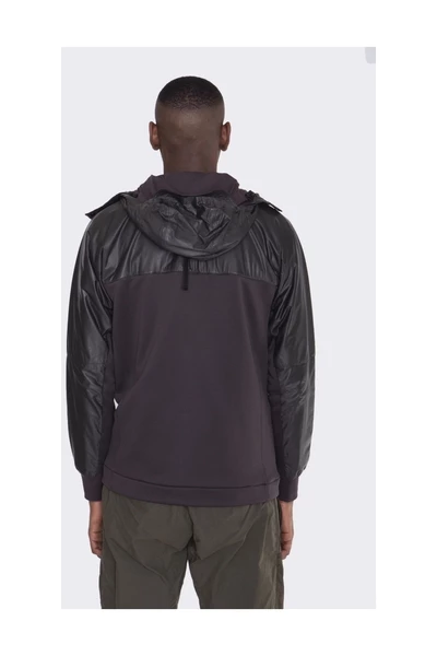 Met Black Hood Sweatshirt, ritssluiting, verschillende functionele zakken en logos c.p. Bedrijf en Gore-Tex. Hoofd van hoge prestaties die zijn samengesteld uit gemengde materialen, waaronder een groter infinium GORE-TEX-membraan, weerbescherming en ongeëvenaard comfort in een lichtachtige anti-natte stijl om een ​​perfecte waterdichtheid te garanderen.