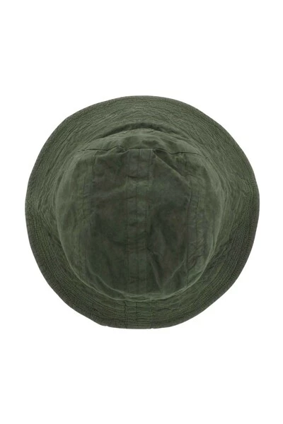 A.P.C. Bleekte-effect katoenen emmer hoed met tonaal geborduurd logo aan de voorkant. Onbevelsd. Het item op de afbeelding is maat M.