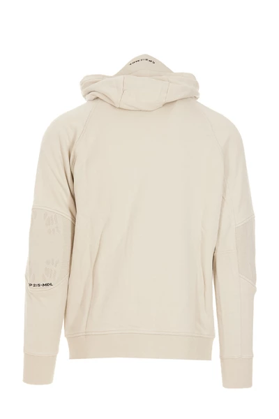 C.P. Bedrijf Sweaters Beige Sweatshirt met Zip, Frontal Patch Logo, Hood, Lateral Zip Pockets