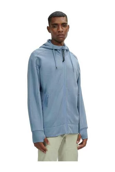 C.P. Bedrijf, zweet met capuchon met Goggle Diagonal Fleece, Blue C.P. Bedrijf 13CMSS082A005086W Goggle Jacket Diagonal Fleece – Verstelbare brilkap – RIPP Design op zoom en manchetten – Twee voorzakken met rits – Continue rits – 100% katoen merk S kleur: