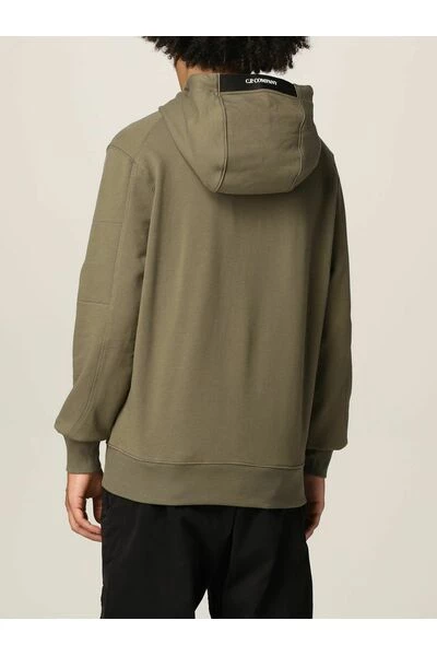 C.P. Bedrijf met capuchon en gedetailleerde lens, karakteristieke lensdetail, kap met veters, zakken aan de voorkant, lange mouw en rechte zoom. Materiaal: katoen.