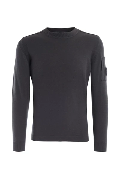 Sweater C.P. Merino Wool Gray Company. Pocket op de mouw met C.P. Bedrijfslens toegepaste samenstelling: 88% maagdelijke wol, 12% polyester