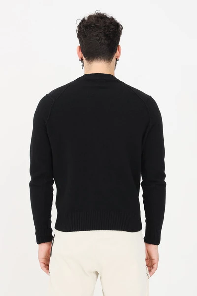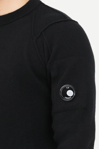 C.P.Company Sweaters Zwart Zwarte sweater met ronde hals van CP Company. Geribde ronde hals, zak met rits en lens op de mouw. Crew hals Effen kleur Elastische zomen Model lengte en maat: 185cm | L