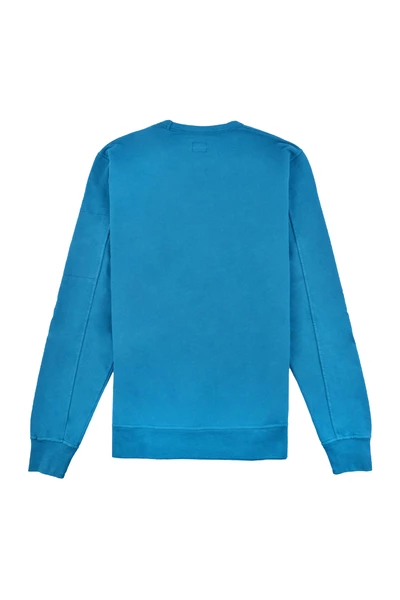 C.P. Bedrijf Sweaters Clear Blue Crewneck geribbelde manchetten en onderste mouwzak met lens