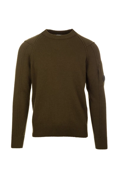 C.P. Bedrijf Sweaters Lamb Wool Crewneck trui geribbelde kraag, onderkant en manchethuls met lens 80% wol, 20% polyamide