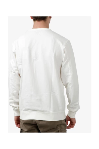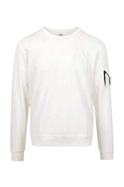 C.P. Bedrijf Sweaters wit – lichtgewicht pluche katoen – zijkastzak op de linker mouw met lens detail – Crewhals – geribbelde gebreide manchetten, zoom en kraag – lange mouwen – regelmatig fit