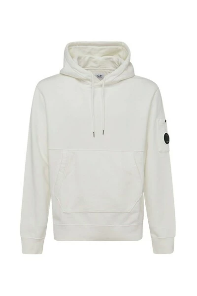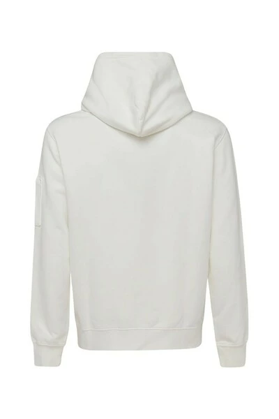 CP Company Maglie Gauze White White Cotton Sweatshirt van CP Company met lange mouwen, trekkoordkap, bemanningshals, enkele pocket, klein zakje en logo -patch op de mouw.