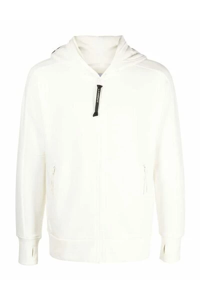 C.p.company maglie gaze wit wit katoen detail ondertekend met voorste zip lange mouw langduur rechtdoor