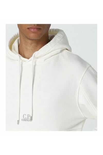 C.p.company maglie gaze wit sweatshirt met logo c.p. Bedrijf. Kap met trekkoord. Lange mouwen met manchetten. Marsupium -zakken. Rechte rand