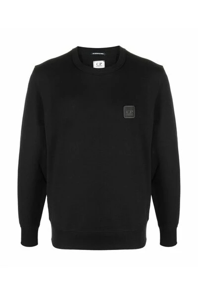 CP Company Sweaters Black Cotton Black Logo-Patch Cotton Sweatshirt van C.P. Bedrijf met Jersey Fleece, Logo Patch naar de voorkant, Crew Neck, Long Sheeves en Straight Hem.