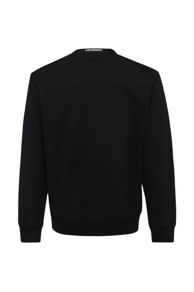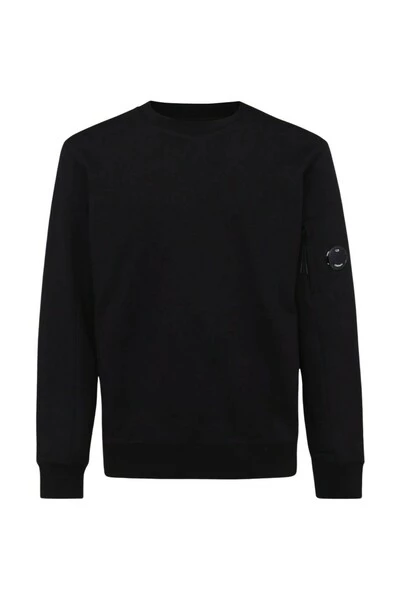 CP Company Maglie Nero Black Cotton Sweatshirt van C.P. Bedrijf met Jersey Fleece, Signature Lens Detail, Crew Neck, Long Sheeves en Straight Hem.
