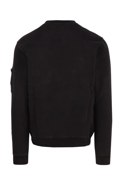 Weersta geverfd sweatshirt in fleece -katoen van gemiddeld gewicht met diagonale reliëfs, om maximaal comfort te combineren met een resistente textuur. Functies geribbeld en C.P. Bedrijfslens op de mouwzak. Weerstaan dat geverfde geribbelde kraag, onderste en manchettenpocket met lens