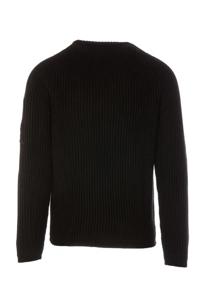 C.P. Company Sweaters Black Sweater, Crewneck, Lateral Patch Logo