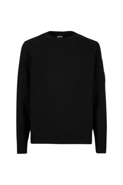 Hoge nek trui met grote ribben op de nek, onderste en manchetten en compartiment op de mouw met C.P. Bedrijfslens. Het is gemaakt met lambswool, waardoor de trui zacht, licht en tegelijkertijd isoleert.