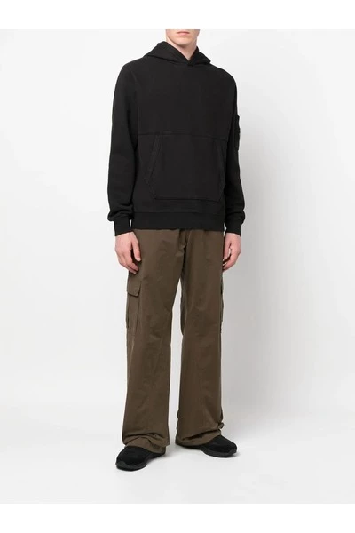 Zwart logo patch katoen hoodie logo patch bij de mouw klassieke kap vooraanpak pocket lange mouwen rechte zoom