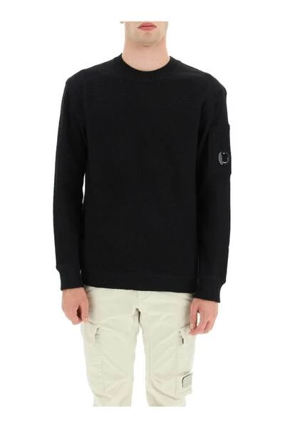 C.P. Bedrijfsprow-hals trui in pure merinowol met een gematteerd effect, verrijkt door een pocket met c.p. Bedrijfslens detail. Rib-gebreide nek en manchetten, regelmatige pasvorm. Het model is 187 cm lang en draagt een maat IT 48.