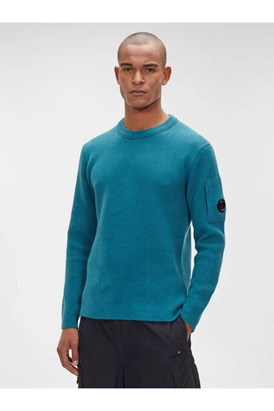 C.P. Bedrijf Sweaters Lambswol Plain Light Blue Sweater door C.P. Bedrijf in wol met Crew Neck, Lens Logo -toepassing op de mouw en geribbelde zoom en manchetten.