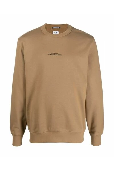 C.P. Bedrijf Capsule Sweaters Brown Bordidered-Logo Sweatshirt van C.P. Bedrijf met bruin, katoen, geborduurd logo aan de borst, bemanningslid, lange mouwen en geribbelde zoom.