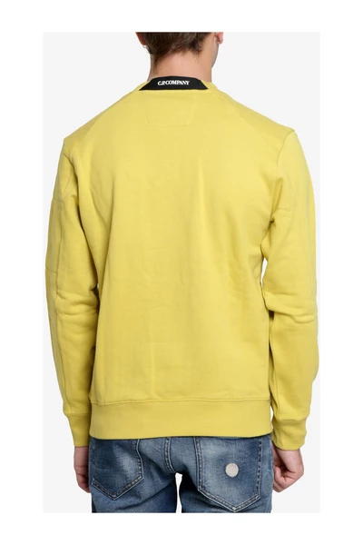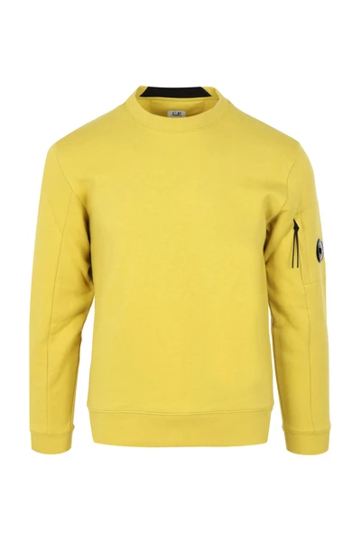 C.P. Bedrijf truien donkergeel – geribbelde manchetten en onder zoom – mouwzak met lens – 100% katoen – vaste kleur – Crew Neck