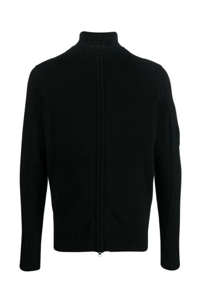 C.P. Bedrijf Sweaters Zwarte lens-detail wollen mix Zipper van C.P. Bedrijf met zwart, wollen blend, kenmerkende lensdetail, zip -aansluiting aan de voorkant, lange mouwen en rechte zoom.