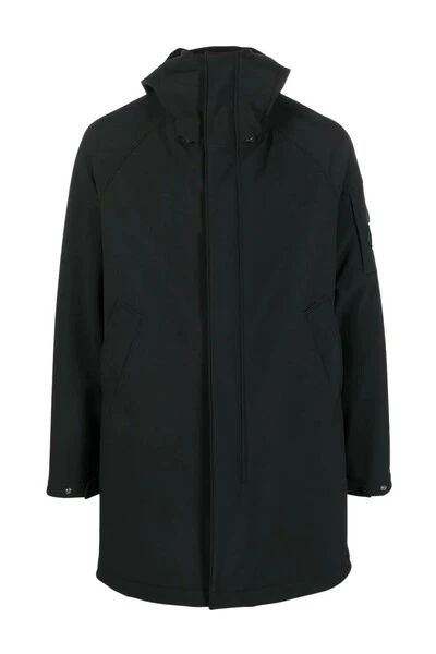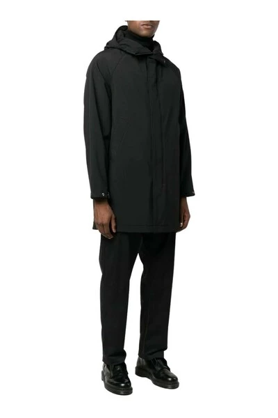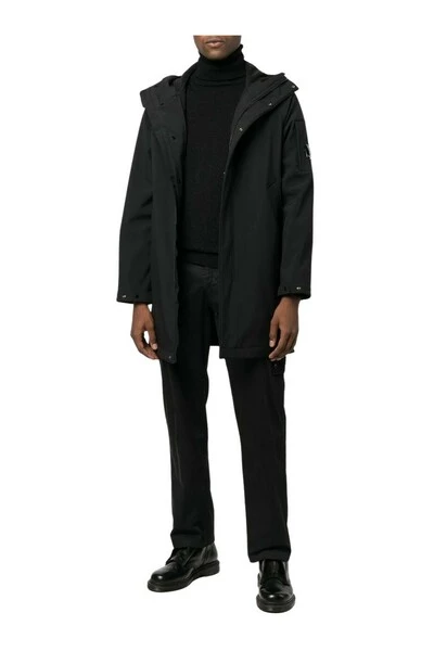 Zwart, katoen, detail van kenmerkende glazen, ritssluiting voor de voorkant, klassieke kap, lange mouwen, rechter zoom. Merk -ID: 13CMOW233A006097A