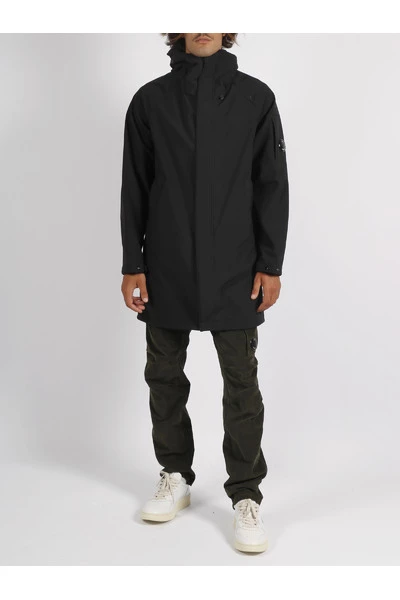 C. P. Shell-r Parka door C. P. Company, in waterafstotende gerecycled nylon. – Nylon Fabric C.P. Shell -R – kap met hoge kraag en vizier – Zip en flap sluiting – Profiled zijzakken – 94% polyester, 6% elastaan