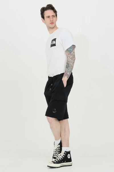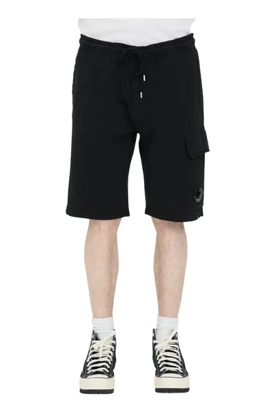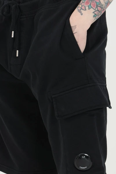 C.P.Company Shorts Zwart Shorts met elastiek in de taille en tunnelkoord. Zijzakken met knopen. Comfortabel model in effen kleur. Elastische tailleband Sluiting met tunnelkoord Regular Fit Model lengte en maat: 182cm | L