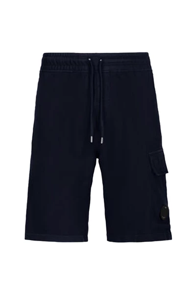 CP Company Blue Blue Burmuda heren SS 2022, in geamplificeerd katoen, elastisch leven met trekkoord, twee zijzakken, zak op het been met toepassing van lens C.P. Bedrijf, regelmatige fit, solide kleur