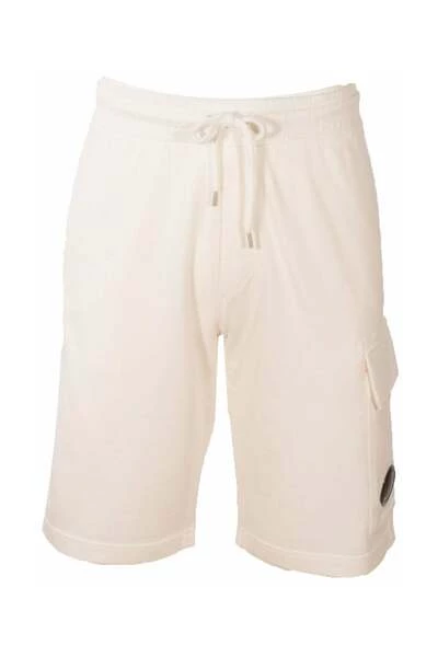 De sportieve stijl van C.P Company in een korte witte broek met grote voorzakken, elastisch trekkoord en extra zak op het been, met een metalen logo met lens C.P Company. Gemaakt van plus katoen. Knielengte. Verstelbare Coulisse in het leven. Normale pasvorm. Witte kleur.