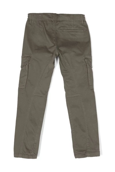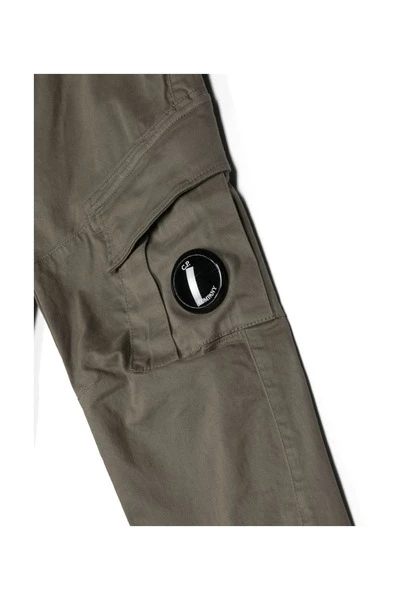 C.P. Bedrijfsbroek Green Lens-verstrikte vrachtbroek van C.P. Bedrijfskinderen met kaki, stretch-cotton, kenmerkende lensdetail, logo-afdruk aan de voorkant, twee zijkrachtvakken, riemlussen, voorste knop en ritssluiting, twee zijzakken, achterste laszak en rechte been.