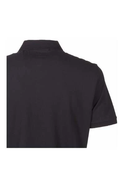 De sportieve stijl van C.P Company in een marineblauw poloshirt met korte mouwen, een klep met twee knopen en het logo op de borst.