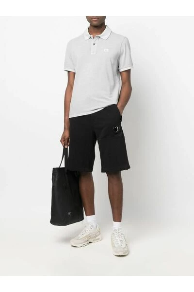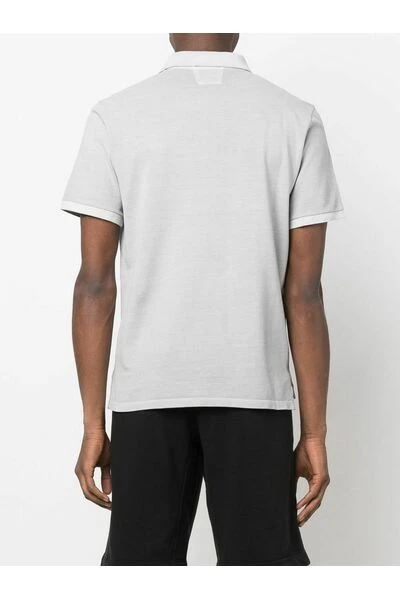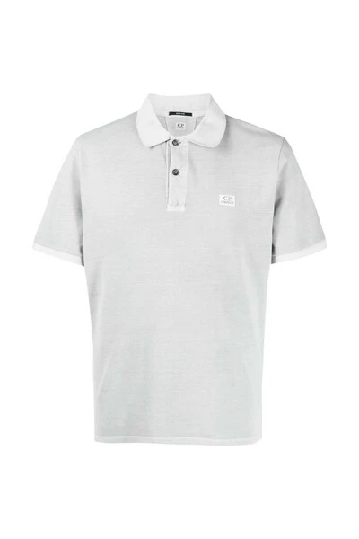Polo C.P. Bedrijf met licht geel borduurwerk, katoenen mengsel, borduurlogo, poolhals, voorste knoppen, korte mouw en rechte zoom. Gemaakt in Italië