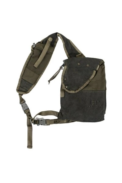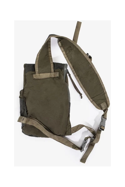 Schoudertas met voorste sluiting. Verstelbaar model in platte nylon mix. Pocket met trekkoord en compartimenten met sluiting. Logo geborduurd op de voorkant.