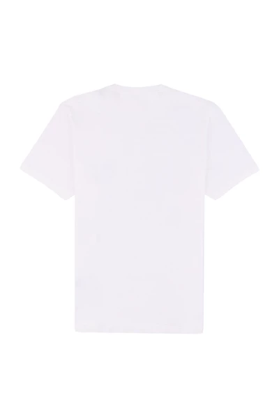 C.P. Bedrijf Witte Crewneck Short Sheeves Logo op de borst geribbelde kraag
