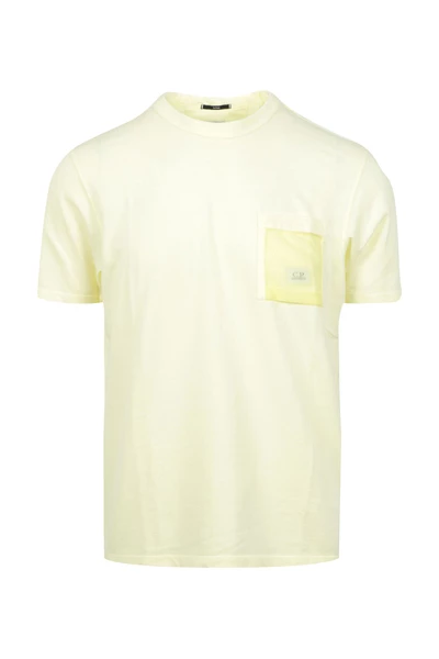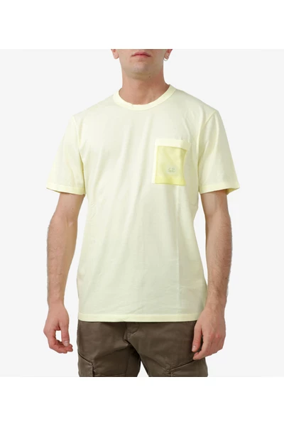 C.P. Bedrijfst -shirts en polo`s geel – piquet – ronde nekpatroon – korte mouwen – borstzak – logo -detail op de borst – kledingverven – slanke pasvorm
