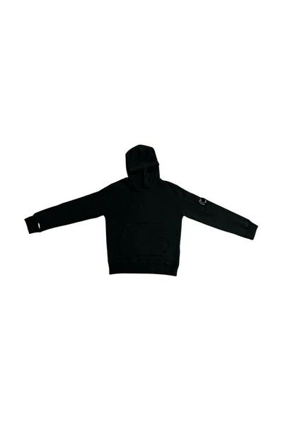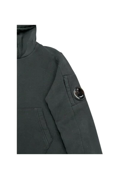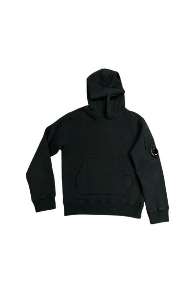 Hoodie voor kinderen van het merk CP Company. Sweatshirt met zwarte katoenen kap met aan de zijkant het embleem van het merk CP Company. De CP Company Child Collection van 2 tot 14 jaar oud moet worden ontdekt in Little Michele en Noelle in Bastia of op www.littlemichelenoelle.com
