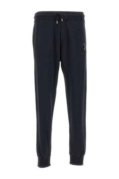 C.P. Bedrijfsbroek Cotton Jogger Man C.P. Bedrijf, blauwe kleur, regelmatige pasvorm, twee zijzakken, muntenzak aan de voorkant met C.P. Black Company -lens, elastische geribbelde tailleband en verstelbaar met trekkoord, geribbelde elastische zoom, perfect voor een sportieve look, gemaakt in Italië.