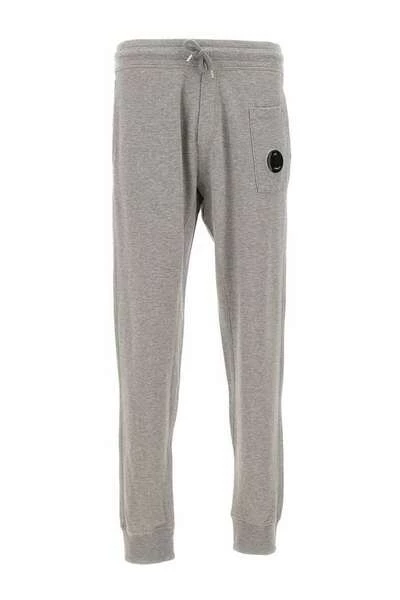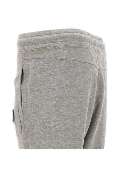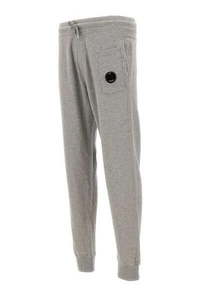 C.P. Bedrijfsbroek Gray Man Cotton Jogger C.P. Bedrijf, grijze kleur, regelmatige pasvorm, twee zijzakken, muntenzak aan de voorkant met C.P. Black Company -lens, elastische geribbelde tailleband en verstelbaar met trekkoord, geribbelde elastische zoom, perfect voor een sportieve look, gemaakt in Italië.