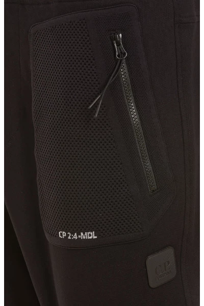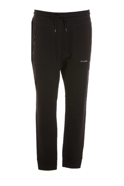 C.P. Bedrijfsbroek Black Track Pants, Coulisse Sluiting, Elasticized Taille, Lateral Zip Pockets, Frontal Logo