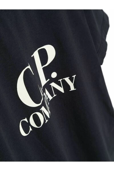 C.P. Bedrijfst-shirts en Polos Black logo-print katoen T-shirt van C.P. Bedrijfskinderen met middernachtblauw, katoenen, logo -print naar de voorkant, grafische afdruk aan de achterkant, crewhals, korte mouwen en rechte zoom.