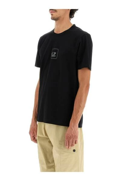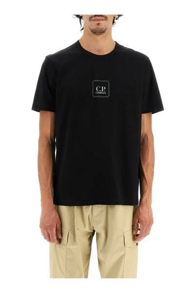 C.P. Company Crew Neck T-shirt uit de Metropolis-serie, gemaakt van merceriseerde pure katoenen trui met grafische print op de achterkant en logo-print op de borst. Kleedt slank af. Het model is 187 cm lang en draagt een maat L.