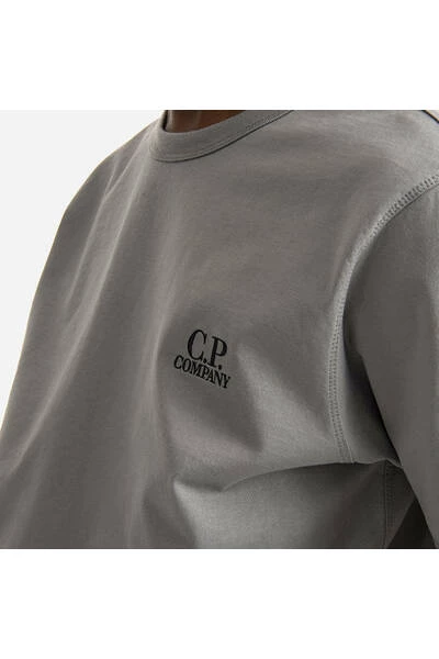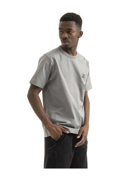 Een klassiek herenshirt met korte meter: gewone phytstandaard, geribbelde halslijn, katoenen stof borstgeborduurd logo c.p. Companyo in een geweven tag met QR -code, waarmee u de authenticiteit van het product op de website kunt controleren: www.certilogo.com