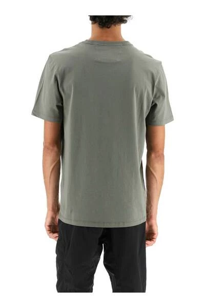 C.P. Bedrijf T-shirt in 30/1 katoentrui met logo-print op de borst. Micro-geribbed crewhals. Kleedt slank af. Het model is 187 cm lang en draagt een maat L.