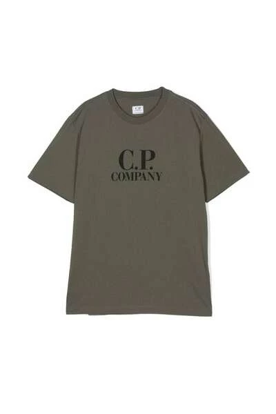 C.P. Bedrijf T-shirts en Polos Green Teen Logo-Print T-shirt van C.P. Bedrijfskinderen met militaire groene, katoen, Jersey Knit, Logo -print naar de voorkant, bemanningshals en korte mouwen.