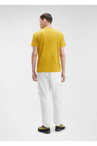 CP Company T-shirt. Gele kleur. Kleurcode 239 CP Company Logo op de voorkant. Gecomponeerd in licht katoen. Gemonteerd gesneden. 100% katoen. Dit CP Company T-shirt voor mannen is een referentie uit de collectie. Het kan worden gebonden met fijne katoenen shorts die ook online beschikbaar zijn. Het model meet 1m80 en draagt M. We raden een gebruikelijke grootte aan.